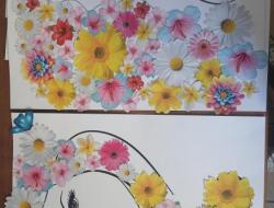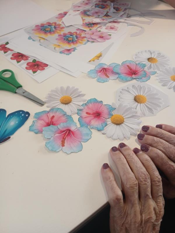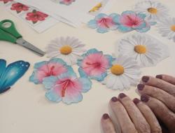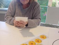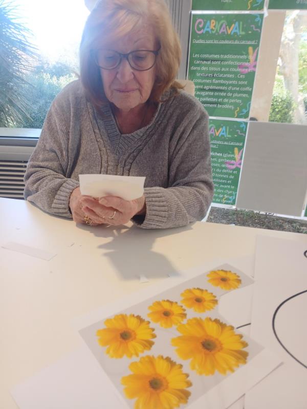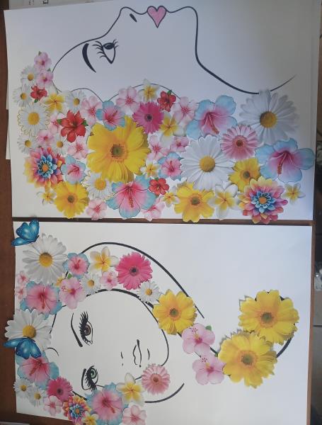 À l’aide de petites fleurs découpées au préalable, chacun a pu participer à la réalisation d’une chevelure sur un visage de femme.