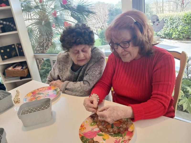 L'EHPAD a organisé un atelier de création de colliers, offrant aux résidents un moment de créativité et de partage. Munis de perles colorées et de fis,ils ont confectionné des bijoux selon leurs gouts. Cet exercice a stimulé leur motricité fine tout en favorisant les échanges et la bonne humeur.