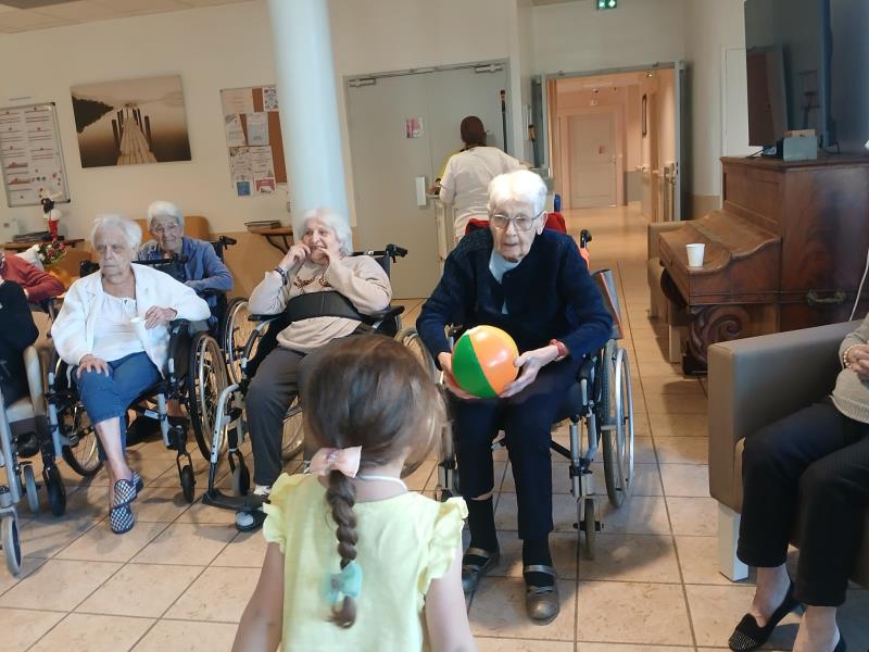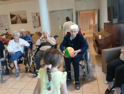 Au programme de cette belle matinée intergénérationnelle : des jeux de ballon, des ateliers de dessin et même une petite chorale improvisée. Les enfants, spontanés et enthousiastes, ont rapidement créé du lien avec les résidents, qui se sont laissés porter par cette énergie communicative.