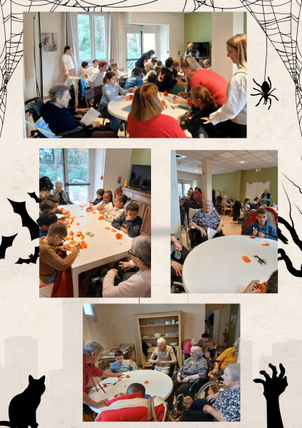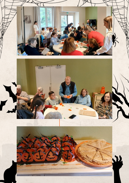 Enfants et résidents ont partagé un moment créatif en réalisant de petites citrouilles avant que les élèves ne récitent une poésie " la sorcière" .