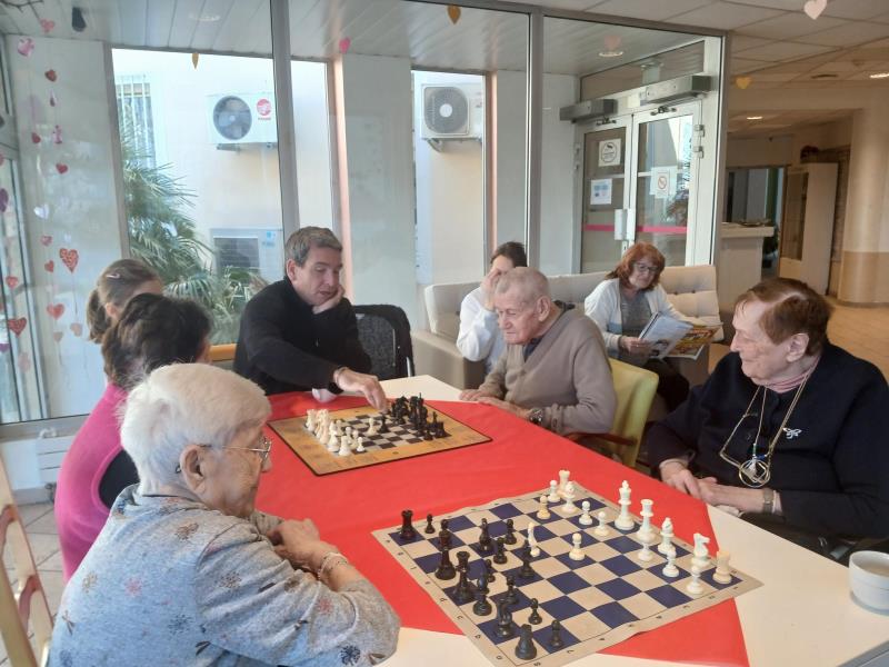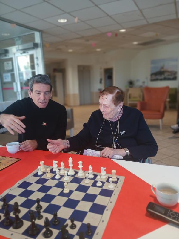 Le vendredi 14 Février ,une initiation aux échecs a été organisée avec Pascal.Cet atelier a permis aux participants de découvrir ou redécouvrir les bases du jeu, d'apprendre les déplacements des pièces et d’échanger autour de stratégies.L’activité encadrée dans une ambiance conviviale, a suscité intérêt et enthousiasme parmi les résidents.