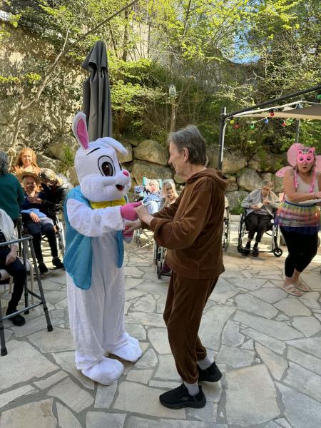 En ce dimanche de Pâques, la résidence s’est parée d’une atmosphère douce et printanière pour célébrer un moment attendu de tous : la distribution des œufs en chocolat. Sous le regard émerveillé des résidents, un joli papillon est venu accompagner cette joyeuse scène, bientôt rejoint par un lapin malicieux, symbole de cette fête pleine de gourmandise et de renouveau.