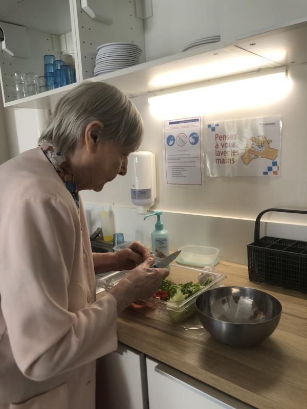 - des ateliers de cuisine thérapeutique, ils favorisent l’autonomie, la convivialité et l’échange, mais également la coordination des mouvements. Ces ateliers permettent aussi de stimuler l’appétit et de lutter contre l’isolement social.