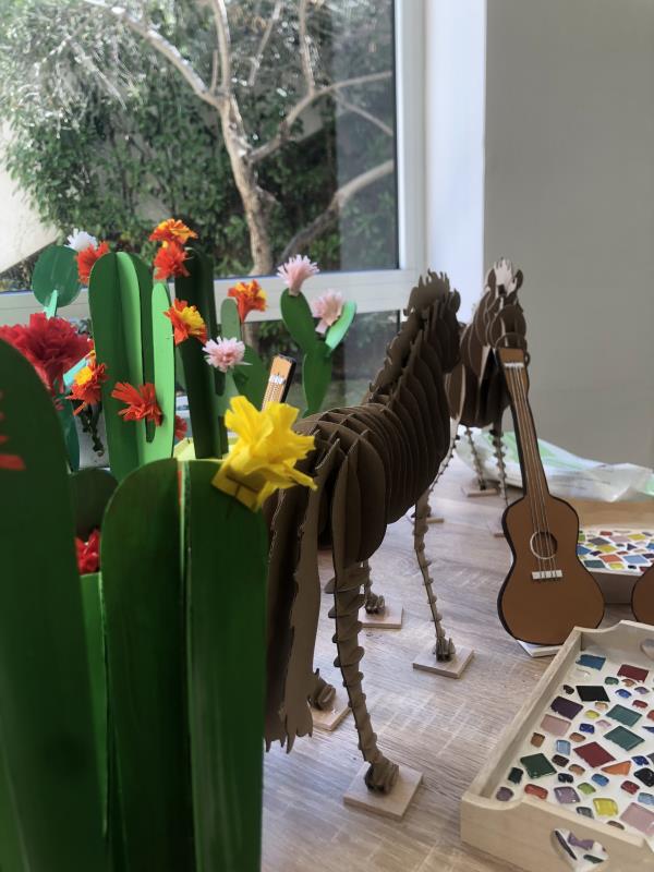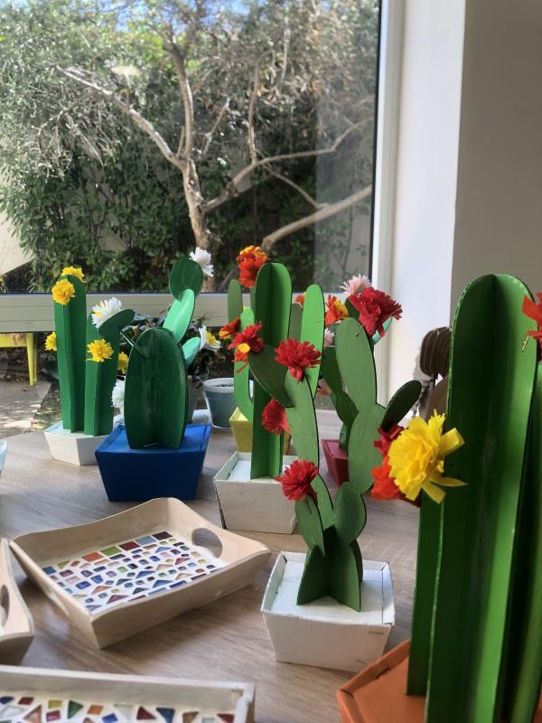Toutes ces activités permettent aux résidents de maintenir leur mobilité et de rester en éveil psychologiquement. Pour la majorité d’entre eux, c’est un moment de partage durant lequel le lien social se crée. Par ailleurs, à l’occasion de plusieurs événements de l’EHPAD, les résidents ont l’occasion de fabriquer des décorations. Cela a été le cas pour la prochaine fête des familles au thème hispanique (cactus, guitare, chevaux…). Ils s’y prennent à coeur joie et s’investissent pour de créer la décoration de toutes nos festivités. Valérie est disponible pour les soutenir et les aider le cas échéant.