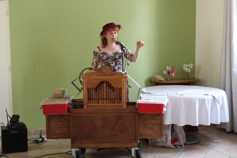 Pour célébrer l’arrivé de l’été mais également la fête de la musique une chanteuse est intervenue avec un instrument de musique qui sort de l’ordinaire : L'orgue de Barbarie. Entre manivelle et ritournelles d’antan ou plus contemporaines, le dynamique personnage n’a pas manqué d’expliquer les origines d’un instrument séculaire, dont la naissance remonte probablement au milieu du XIXème siècle, au cœur de l’Italie. Plusieurs mélodies ravivant immanquablement de bons souvenirs aux participants, entre chansons d’une ‘bat’ de java ou d’une ‘mauvaise réputation’.