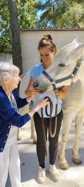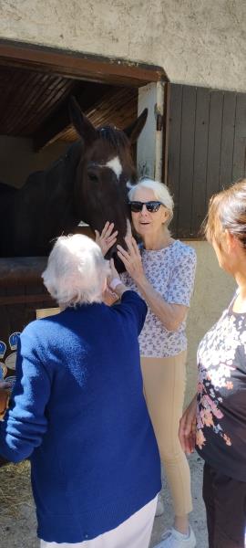 La Marguerite propose désormais, dès la rentrée, à l’ensemble des résidents une nouvelle activité : l'équithérapie à raison de de deux fois par mois ! L’écurie Spirit Horse accueille avec enthousiasme et ferveur nos chers résidents afin de leur proposer des activités équestres à des fins thérapeutiques en présence de Charlotte, une cavalière professionnelle.