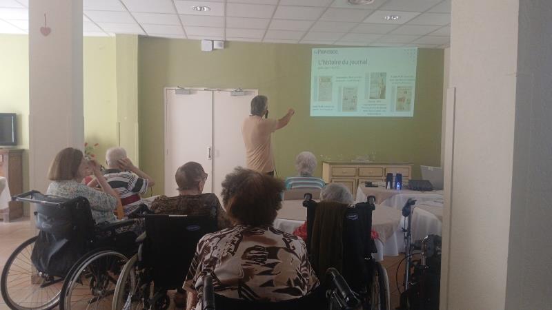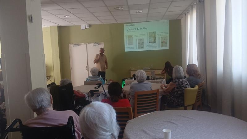 Magali et François, journalistes à La Provence, sont venus à la rencontre des résidents pour leur faire découvrir l’histoire de leur journal.