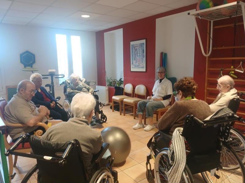 Les séances de kinésithérapie en groupe en EHPAD favorisent le maintien de la mobilité et de l’autonomie des résidents.