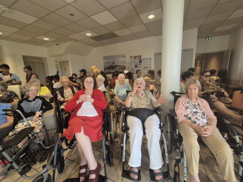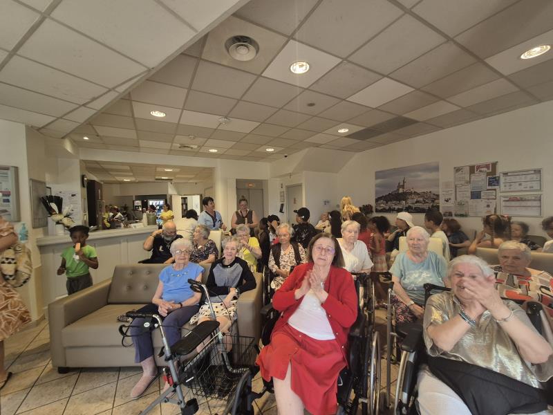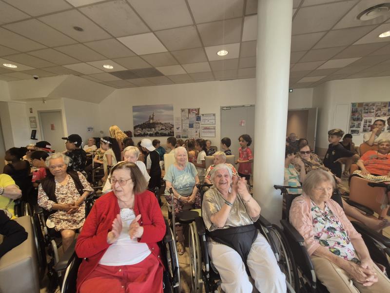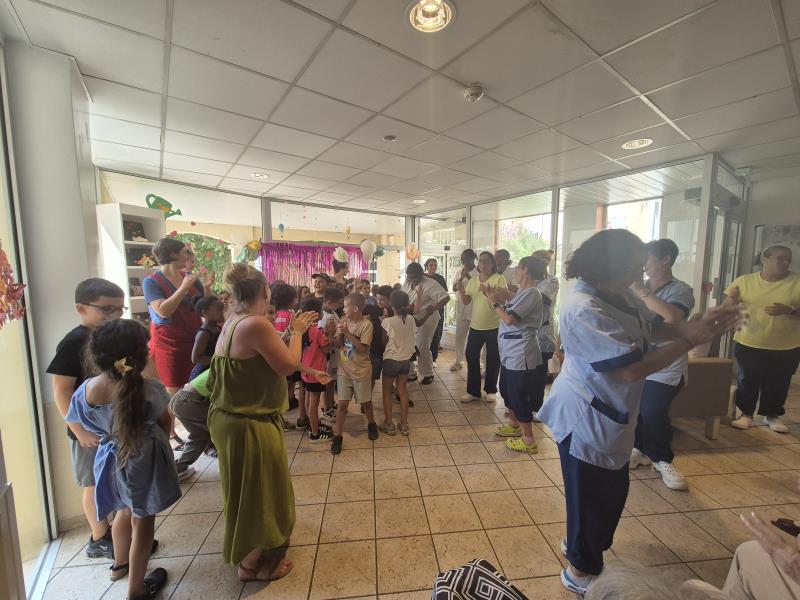 Les enfants ont offert une joyeuse chorale, mêlant chants, danses et rires, pour le plus grand plaisir des résidents.