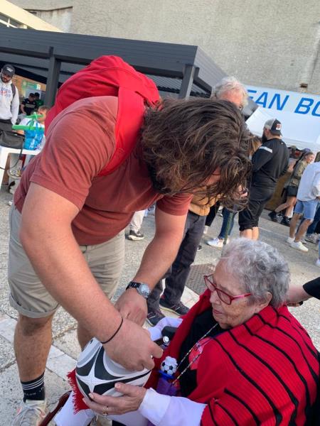 L’objectif de cette action est de faire bénéficier les résidents d’EHPAD d’une sortie mémorable et festive autour du ballon ovale. L’âge ne doit pas être un frein à la participation de ces événements, épaulée par une équipe de soignante les résidents expriment avoir vécu une deuxième jeunesse !