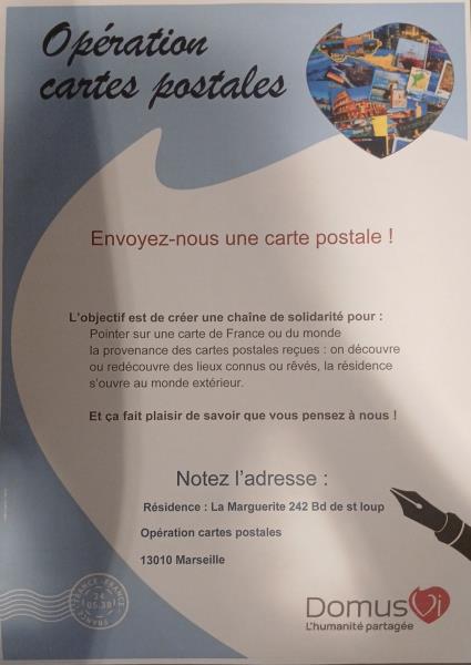 A la résidence Marguerite,nous lançons l’opération Carte postale afin de faire voyager nos résidents à travers vos escapades.