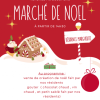 Publiée le 11/12/2023La résidence La Marguerite est heureuse de vous convier à son marché de Noël, le vendredi 15 décembre 2023 à partir de 14h30. Plusieurs décorations, objets confectionnés par nos ainés seront présentés. Ce Stand sera tenu par nos résidents pour leurs plus grands plaisirs. A cette [...] Lire la suite