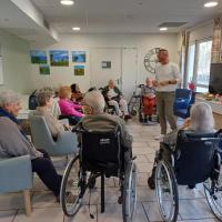 Publiée le 02/04/2026Les séances de sophrologie , animées par Jérôme , s'inscrivent dans le projet d'accompagnement personnalisé des résidents. Elles contribuent au maintien du bien-être psychique et à la diminution de l'anxiété,notamment chez les personnes présentant des troubles cognitifs. < [...] Lire la suite