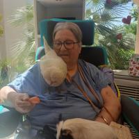 Publiée le 17/06/2025Une fois par mois, un intervenant en médiation animale vient nous rendre visite, pour le plus grand bonheur des résidents. Chien, cochons d'inde, Pogona, poules pompon ou autres animaux apportent réconfort, sourires et stimulation sensorielle. Le simple contact avec l'animal apaise et favorise la communication. [...] Lire la suite