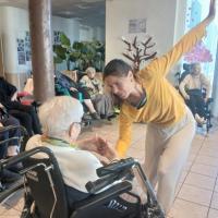 Publiée le 07/02/2025Dans le silence de l'EHPAD, un souffle,un frémissement. Lætitia invite à éveiller le mouvement et l'imaginaire. Une main s’élève, un regard s’illumine, un souvenir affleure. Adaptée également aux personnes en fauteuil, la danse se vit dans la subtilit [...] Lire la suite