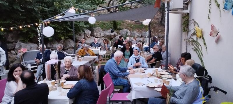 Nous avons pu célébrer ensemble, autour d’une décoration préparé avec soin par notre équipe pluridisciplinaire, un buffet dînatoire suivi d'une farandole de pâtisserie le tout en musique en compagnie de deux musiciens tout au long de la soirée.