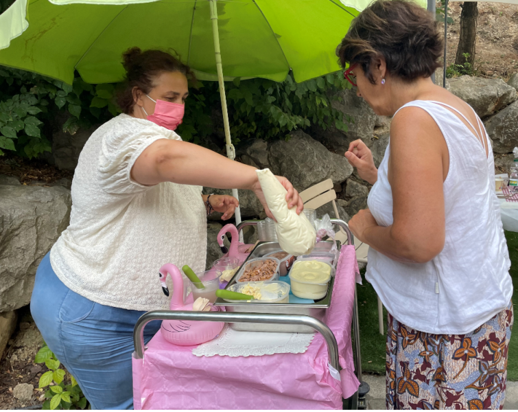 Pour célébrer l’arrivée de l’été, la résidence La Marguerite a organisé une soirée pizza pour les résidents ainsi que leurs proches. En fin d’après-midi Jacky, le camion de pizza, s’est installé sur le parking de la résidence. Les résidents ont pu saluer le pizzaiolo qui a réalisé une quarantaine de pizzas pour la soirée. De la pizza 4 fromages à la Royale en passant par la pizza Chèvre, Mozzarella..; Il y en avait pour tous les goûts ! pour le Dessert l'ensemble des équipes ont décoré un chariot de glace ambulant avec quelques mignardises faites maison ont également été servies. De jolies tables ont été décorées spécialement pour l’occasion. Un chanteur était également présent ce soir là pour pousser la chansonnette italienne.