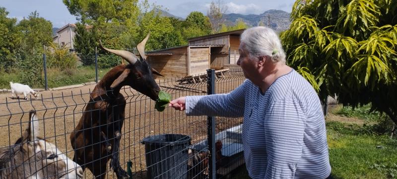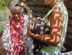 Ce Mardi après midi un groupe de résident accompagné de l'animatrice et de Valérie notre Assistance de Soins en Gérontologie ( ASG)ont participé à cette sortie . Les résidents ont pu caresser, brosser et donner à manger à différents animaux (âne, un coq, un mouton, une chèvre,, une oie, un canard, des poules, des lapins).